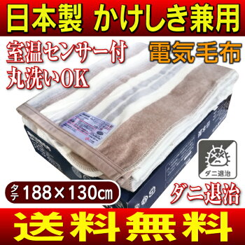 日本製 電気毛布 掛け敷きタイプ ●電気掛敷毛布(電気掛敷き毛布・電気掛け敷き兼用毛布) ●ウォッシャブル(洗える毛布) ●室温センサー付き ●室温の変化を感知し表面温度を保ちます(設定室温20℃) ●ダニ退治機能 ●頭寒足熱配線 ※「敷き毛布として」使うなら、ダブルサイズでも使用できます。