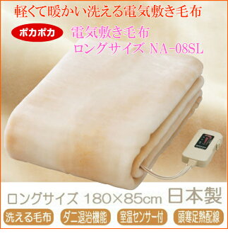 【★エントリーでさらに4倍!12月4日20時〜12月11日1時59分迄★】【在庫有り】【日本製】 軽くて暖かい洗える電気敷き毛布 ロングサイズ(180×85cm) NA-08SL-BE 電気毛布 電気敷毛布 電気ブランケット シングル 寝具 新生活